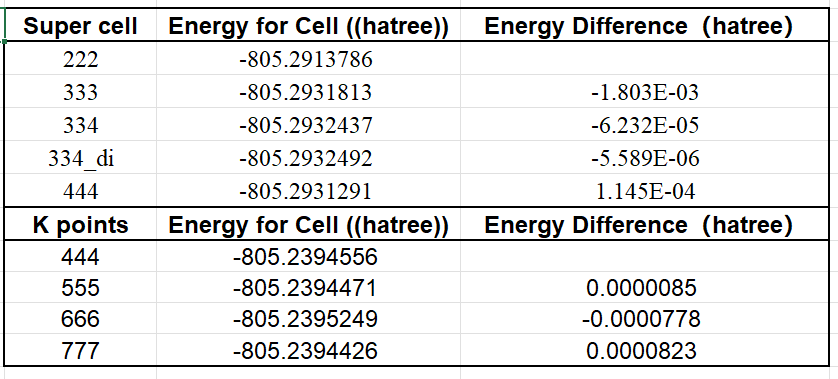 results indicate that the energy converges to –805.2932437 Ha per unit cell